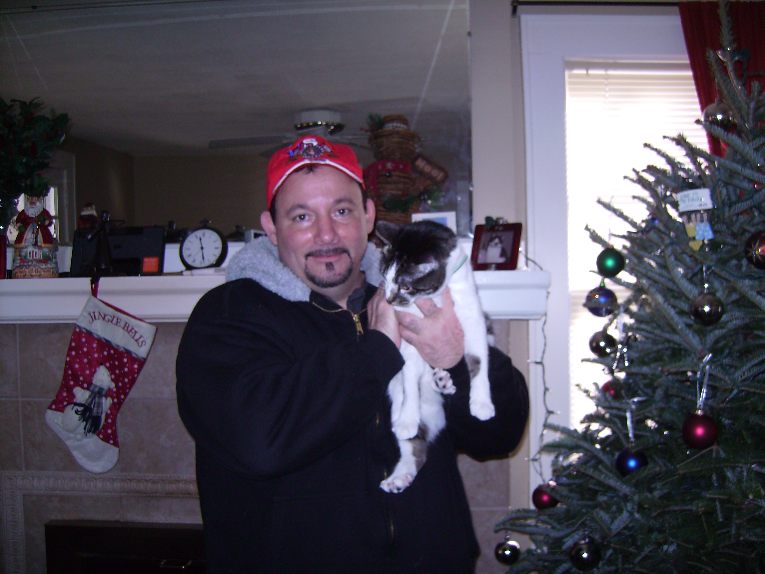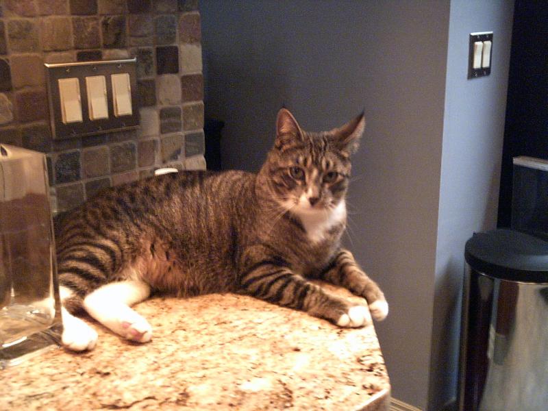 This is Miles - he is a beautiful grey and white tabby. I couldn't get him to look directly into the camera but when you look at him, he's so cute you just want to hug him.