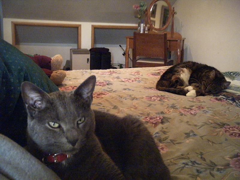 Below are our cats Sabrina and Jake - Sabrina was a street cat who won my husband's heart over. She's an adorable calico who loves to sleep right beside him every night.
